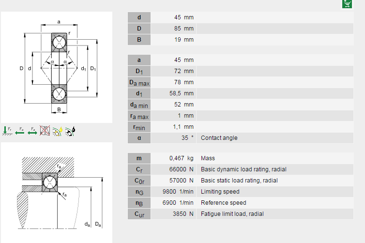 FAG QJ209MPA Angular Contact Ball Bearing series model: