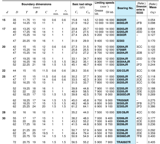 Series | single row tapered roller bearings |