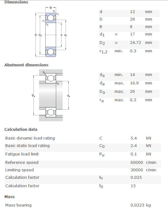 (2) Small bearings ---- nominal diameter size range of 28-55mm;