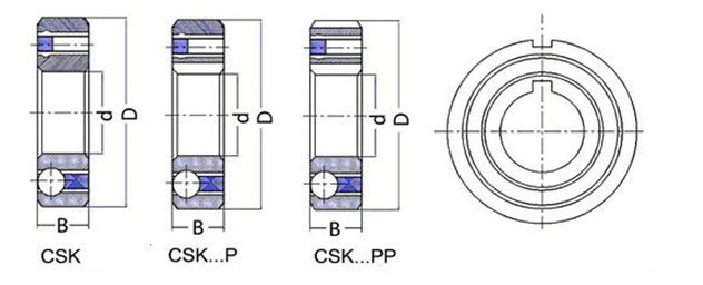 3. CSK bearins series are composed of a 62 series ball bearing (except CSK8 and 40).
