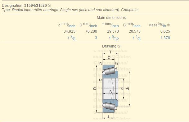 Model | TIMKEN 31594/31520 SET57 standard tapered roller bearing |